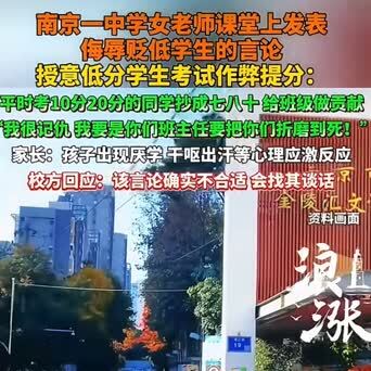 课堂上,这位张老师多次放出狠话,称“我要是你们班主任,把你们折磨到死”,还直白地告诉低分学生,考试可以抄到七八十分,为班级“做贡献”。